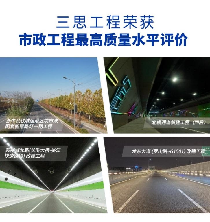 近日,中國市政工程協(xié)會公布“2024年度通過市政工程最高質(zhì)量水平評價工程名單”,浙中公鐵聯(lián)運港區(qū)塊市政配套智慧路燈一期工程(縱一、縱二、清照路)EPC 項目、北橫通道新建工程(西段)、蘇州城北路(長滸大橋-婁江快速路段) 改建工程及龍東大道 (羅山路~G1501) 改建工程在內(nèi)由三思所承建的多項市政照明工程獲“2024年度市政工程最高質(zhì)量水平評價”。