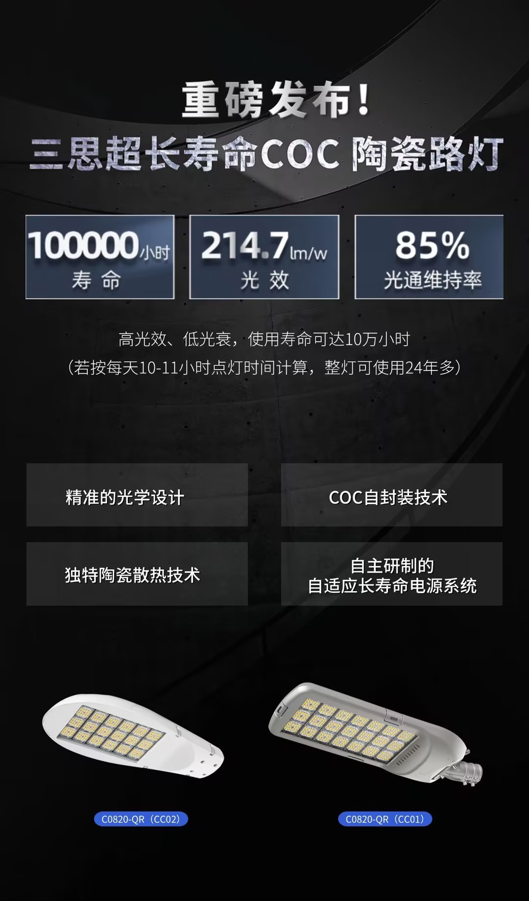 上海三思正式發布兩款超長壽命COC陶瓷路燈C0820-QR(CC01)和C0820-QR(CC02)系列。