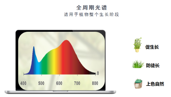 太陽光中包含紫外光、可見光和紅外光,達到地表的紫外光絕大部分被臭氧層吸收過濾,對植物生長階段有主要作為的為可見光波段,三思展翅植物生長燈仿太陽光,滿足植物整個生長過程光照需求。