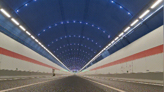 在隧道內,通過大規模應用反射式發光技術及陶瓷散熱隧道燈,營造出高品質、高水平、舒適、節能的隧道照明環境。