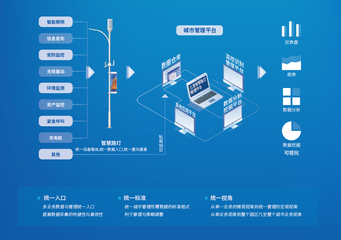 城市的精細化管理需要大量的數(shù)據(jù)依托,智慧路燈及燈桿系統(tǒng)利用其分布在城市各個道路的密集型特點,可以實時收集和發(fā)布各項城市信息。通過對于數(shù)據(jù)及信息的收集和分析,為城市精細化管理提供重要的數(shù)據(jù)支撐,給城市建設者,管理者提供大量實效信息。