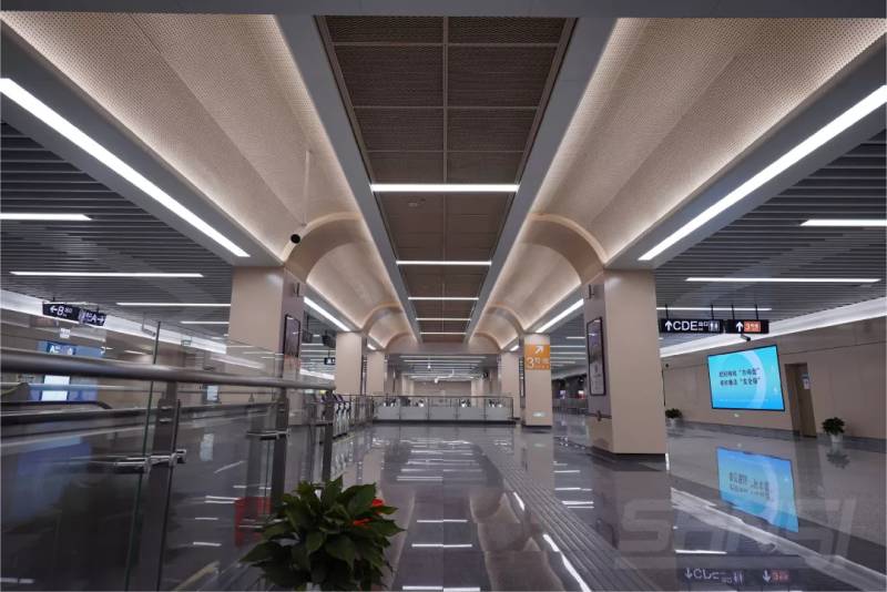 在標準站內(nèi),三思為出入口、通道、站廳等區(qū)域提供優(yōu)質(zhì)的照明環(huán)境,以保證充足的照度、合理的眩光值,使旅客出行得到理想的照明保障。產(chǎn)品光線柔和不刺眼,不易產(chǎn)生眩光,視覺更加干凈舒適,減輕視覺疲憊。而站臺層則通過高亮的燈光,對乘客起到警示作用,也能夠方便乘客獲知線路信息。