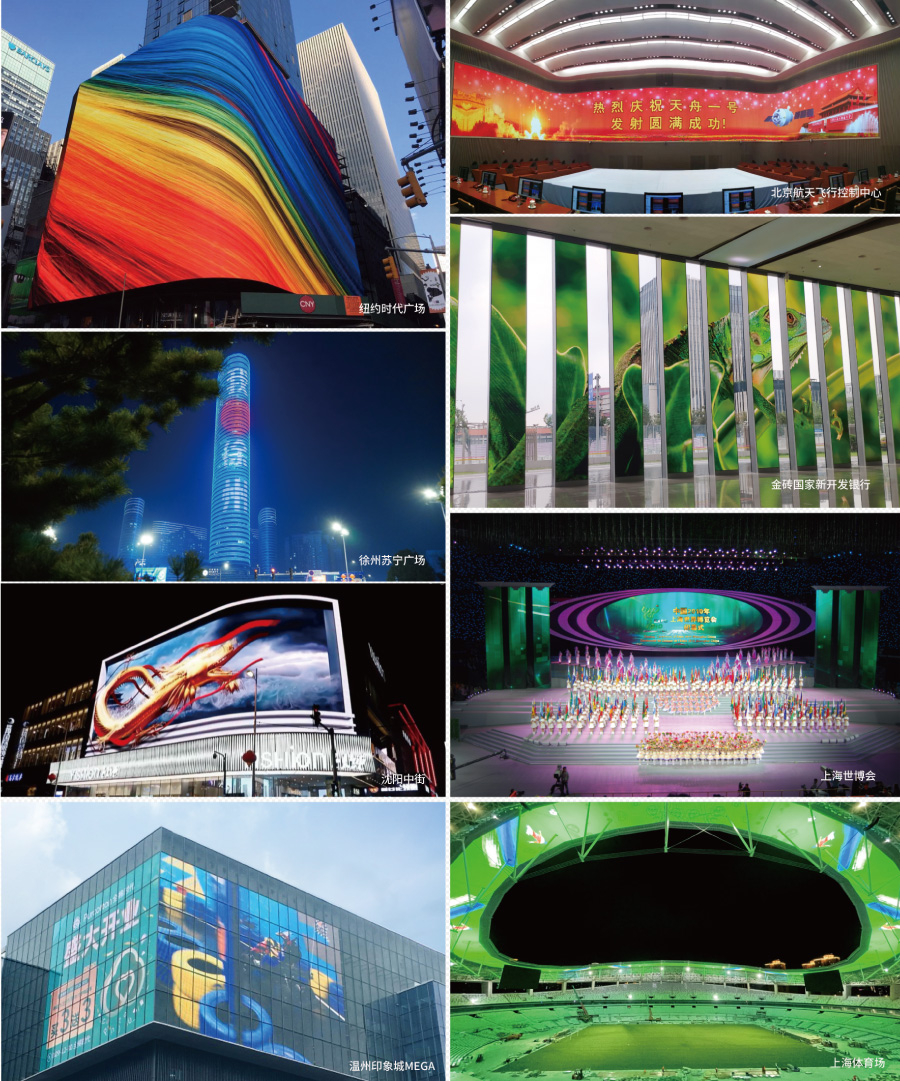 而在公安指揮、廣電演播、戶外傳媒、高端商顯、體育場館、建筑泛光、機場軌交、教育醫療、政務會議、企業宣傳、智慧交通等多個領域,都能見到三思顯示屏的身影——金磚國家新開發銀行總部、上海體育場、上海梅賽德斯奔馳文化中心斗型屏、徐州蘇寧廣場模條屏、沈陽中街裸眼3D屏、美國哥倫布市會議中心3D人頭雕塑、印尼電信公司廣告墻……三思小間距屏向世界呈現時代精彩。