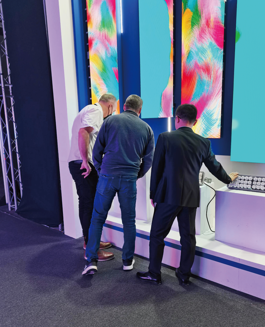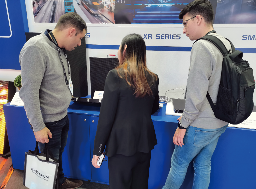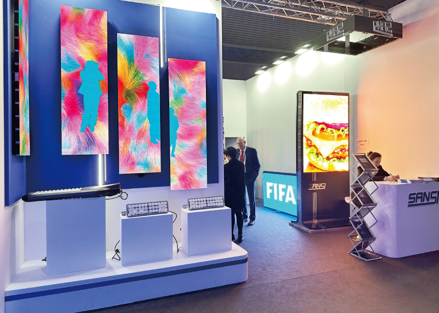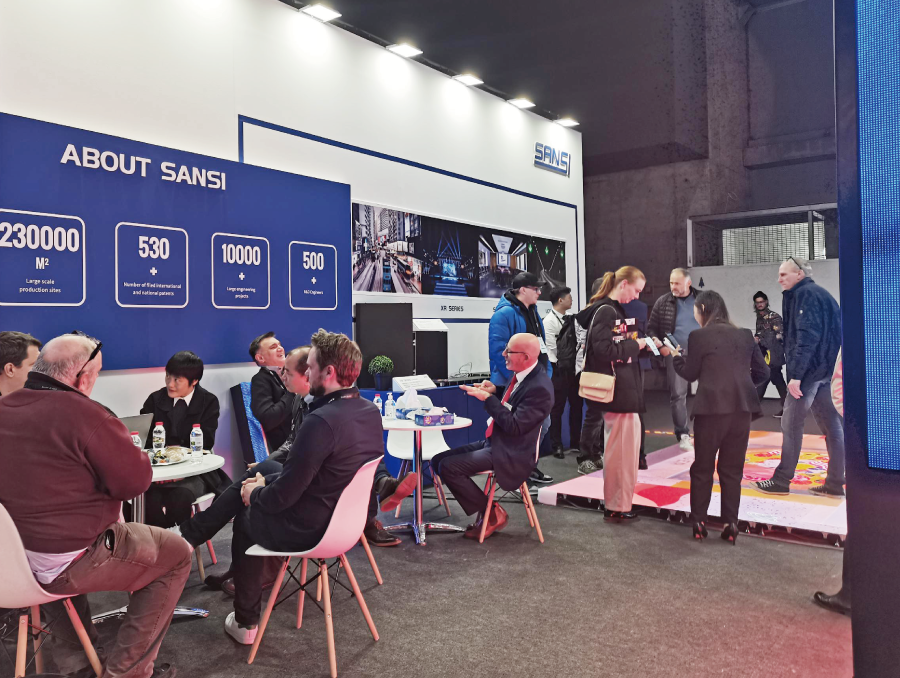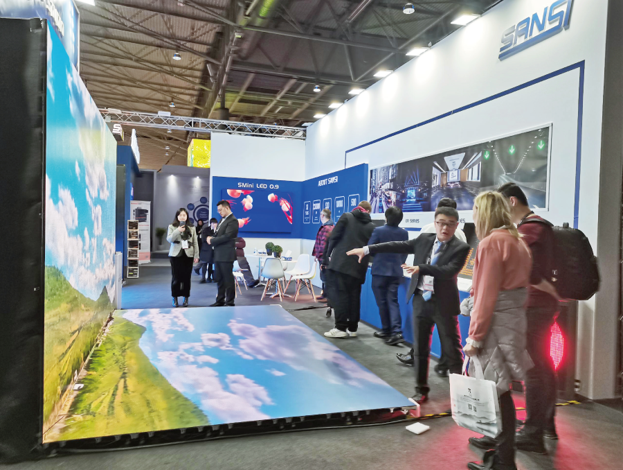 此次展會上,三思重磅展出了Micro LED微間距(P0.9)顯示屏、超高清小間距顯示屏、智能互動地磚屏、廣告一體機、球場屏、智能交通顯示等產品,吸引了眾多客戶前來了解、洽談。展位現場人流如織、氣氛火爆。