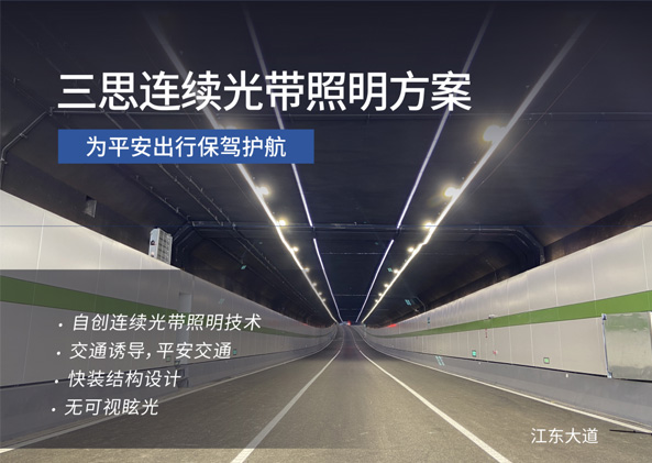 三思連續光帶這一隧道照明領域新方案,也在該工程的重要路段——蜀山隧道(河莊大道~青西三路隧道) 及頭蓬隧道(青六路~青東二路隧道) 上亮相,效果驚艷。
