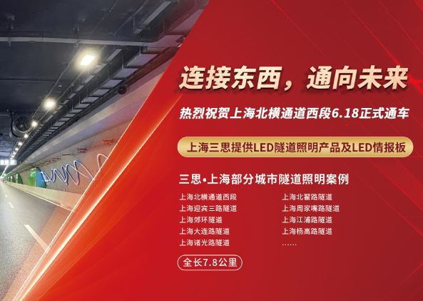 查看詳細 >>為海滄隧道提供全方位的LED隧道照明系統、LED智能交通產品及系統、監控中心顯示系統等綜合解決方案,隧道照明新技術:提高光環境品質海滄隧道全長9.03公里,建設單位采用鉆爆法暗挖隧道形式,創立一套城市復雜條件下地下工程建設的新技術。上海三思為海滄隧道定制了一套LED隧道照明系統解決方案。涵蓋三思獨特的反射式發光技術和陶瓷散熱技術隧道燈等,設計采用不同功率的LED燈混合配光照明及雙側對稱布置。
