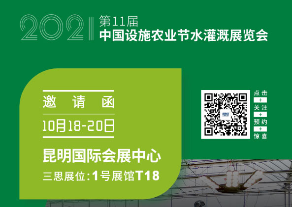 查看詳細(xì) >>021第11屆中國設(shè)施農(nóng)業(yè)水灌溉展覽會(huì),三思邀請(qǐng)您前來參觀-昆明國際會(huì)展中心,1號(hào)展館T18